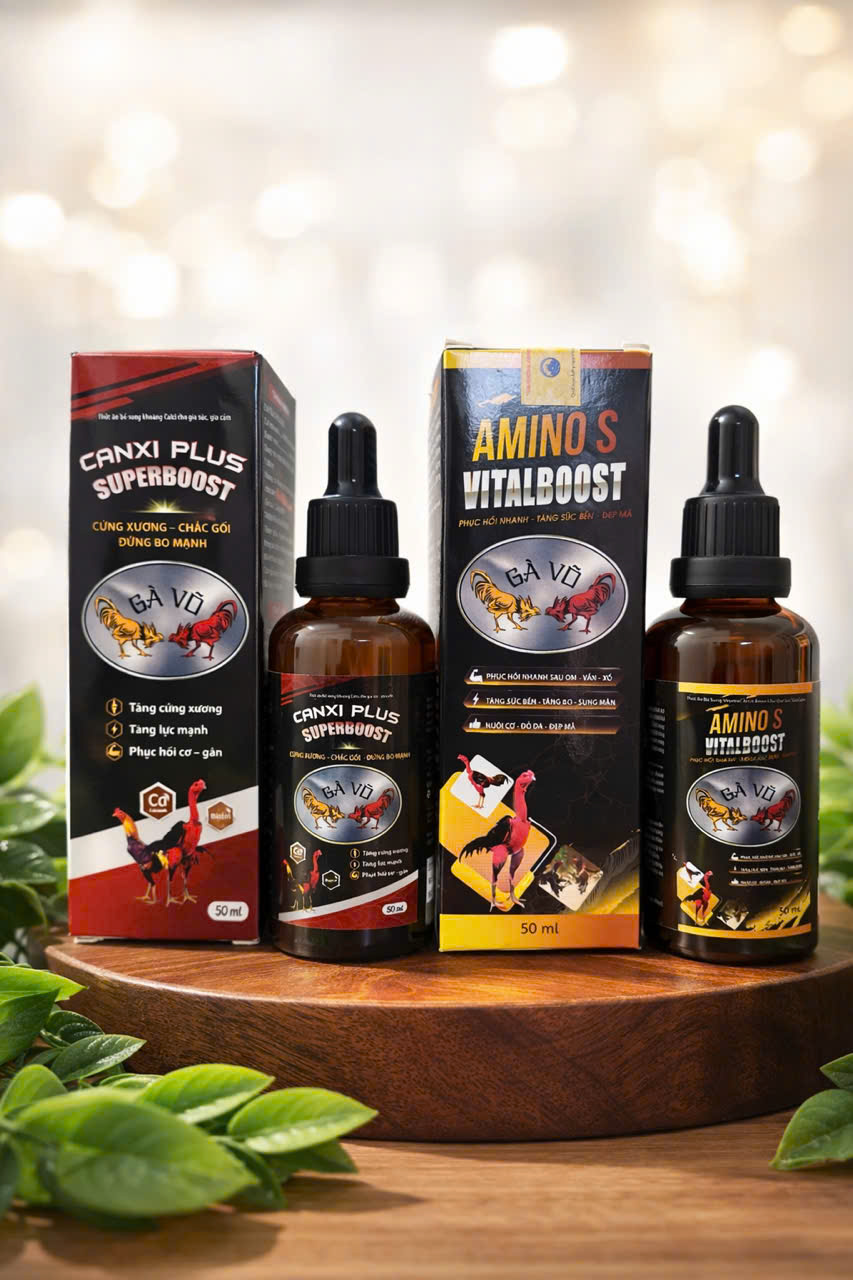 Sự kết hợp giữa CANXI PLUS SUPERBOOST và AMINO S VITALBOOST giúp chiến kê xây dựng nền tảng thể lực vững chắc, tăng khả năng chịu lực và phục hồi nhanh sau luyện tập.