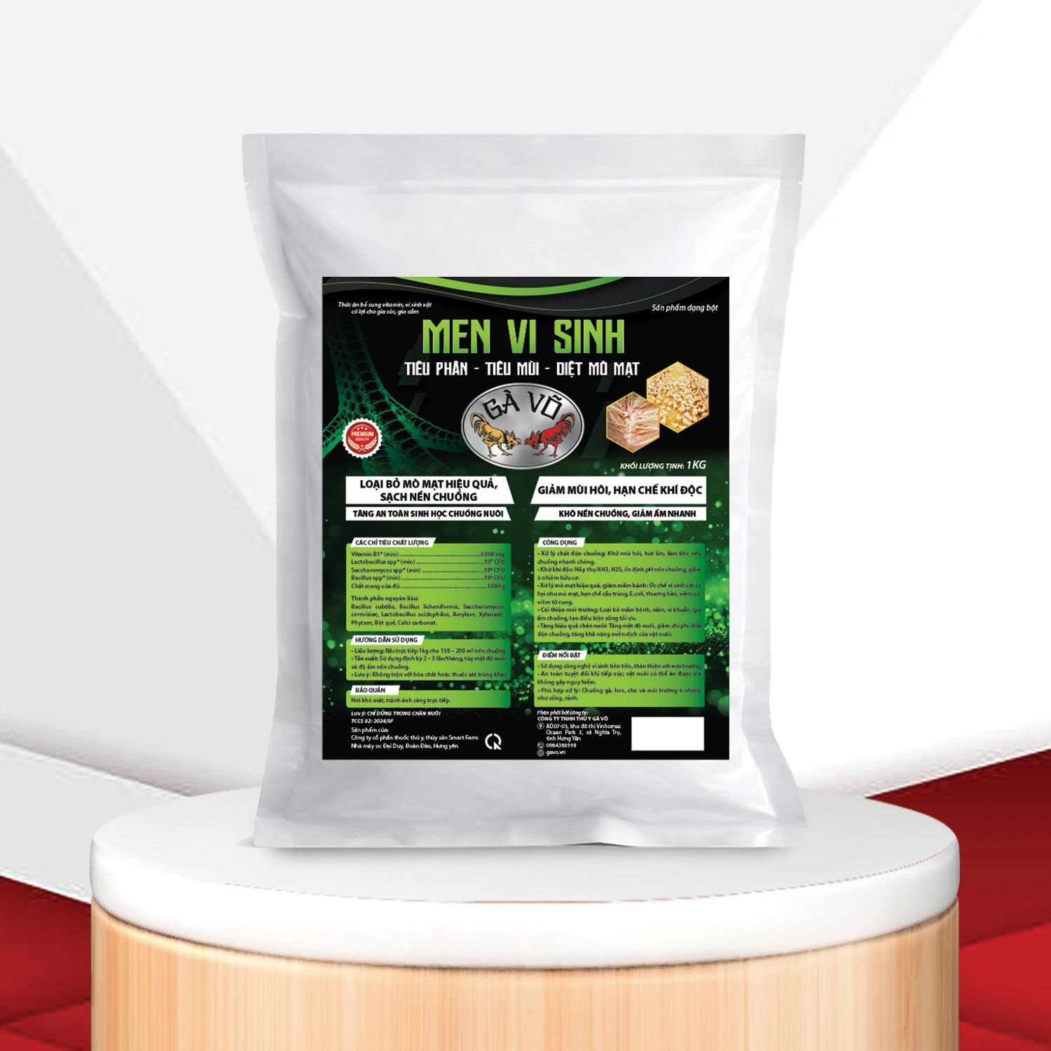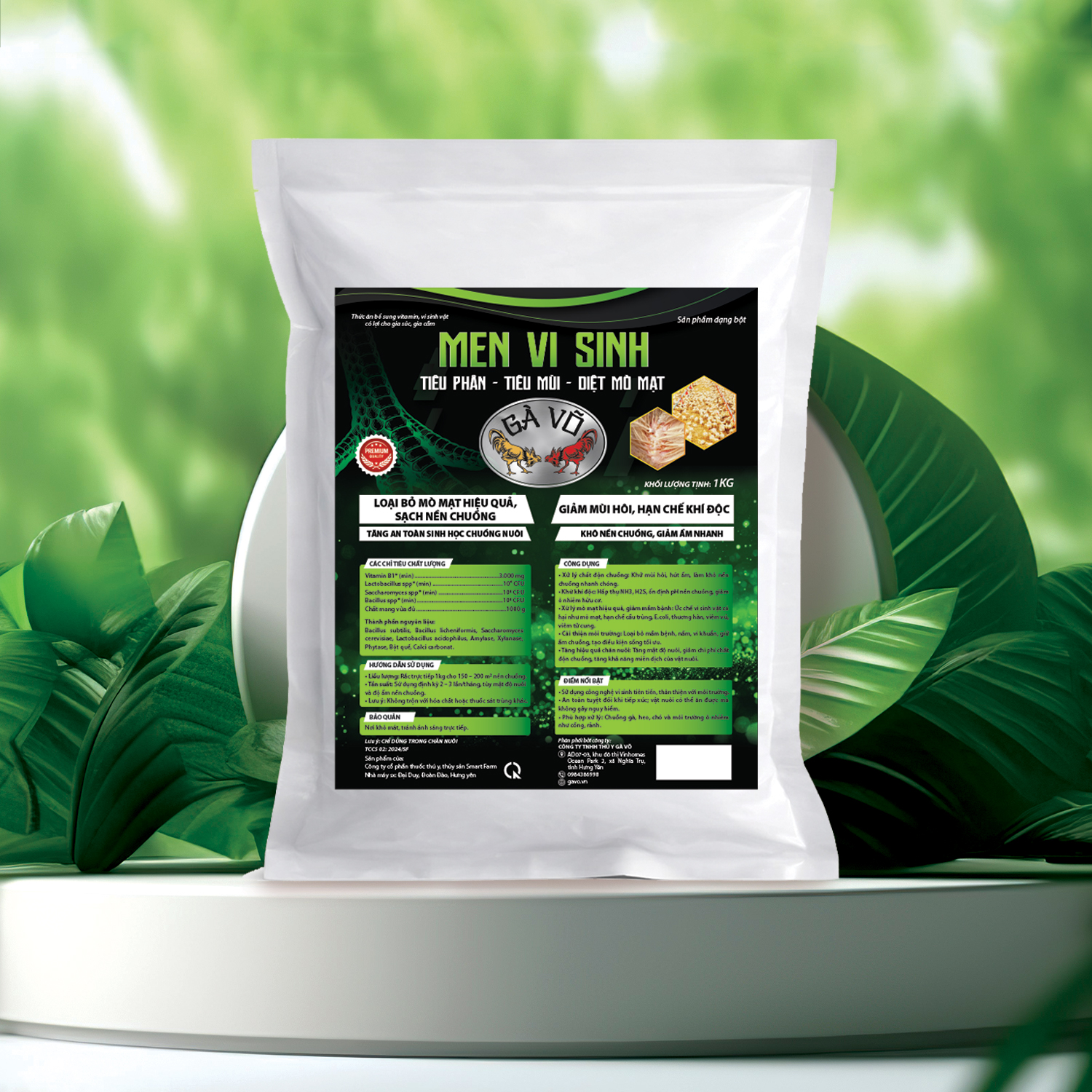 Men Vi Sinh Gà Võ là dòng sản phẩm bổ sung vitamin và hệ vi sinh vật có lợi mật độ cao, chuyên dùng để xử lý môi trường chăn nuôi gia súc, gia cầm. Với công thức đột phá, sản phẩm giúp giải quyết triệt để 3 vấn đề lớn: Mùi hôi - Ẩm ướt - Mò mạt ký sinh.