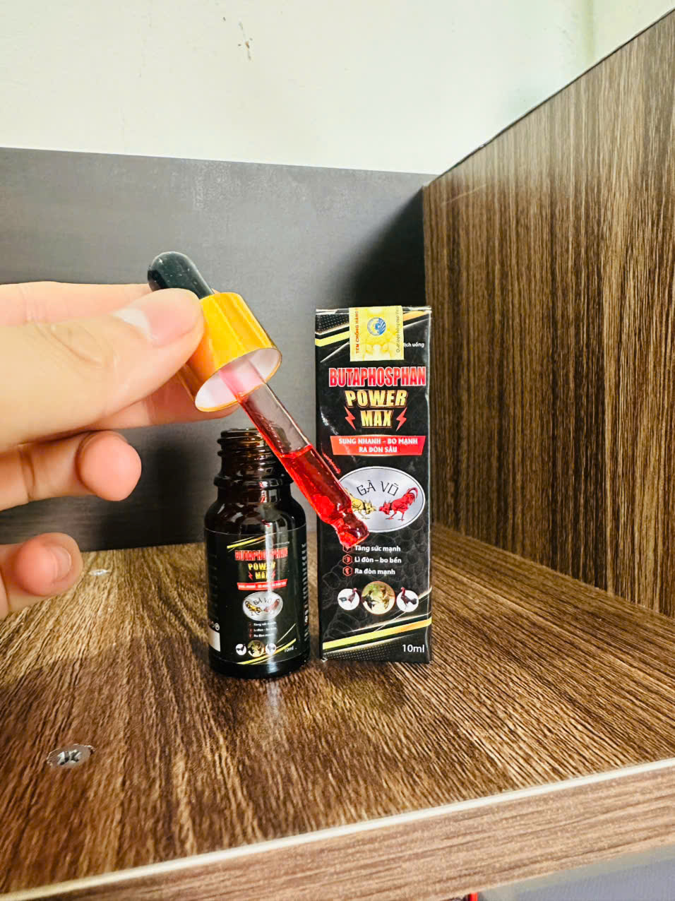 Ngày thi đấu: dùng 6–9 giọt/con trước khi đá khoảng 30 phút.